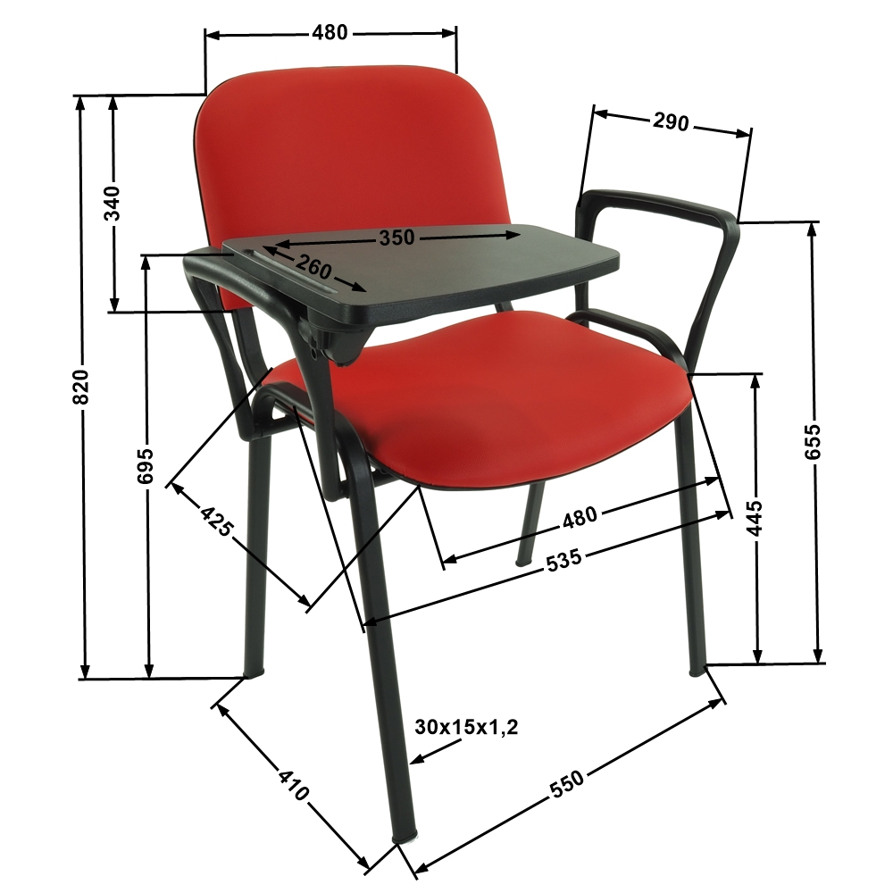 Krzesło ISO z pulpitem i podłokietnikiem – ekoskóra