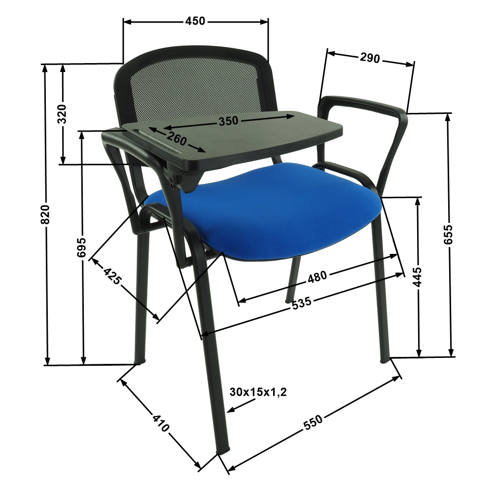 Krzesło ISO z pulpitem i podłokietnikiem – tkanina/siatka