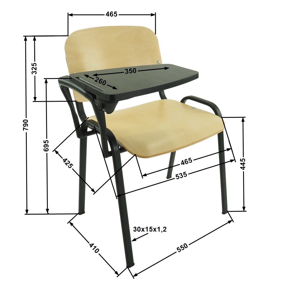 Krzesło ISO z pulpitem ze sklejki 10 mm: komfort, na którym można polegać