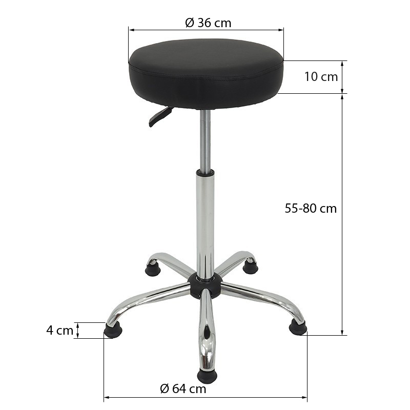 Stopki zapobiegają przesuwaniu się taboretu, a podnóżek odciąża nogi, poprawiając komfort i krążenie. To idealna opcja do stanowisk, w których ważna jest zarówno ergonomia, jak i stabilność.