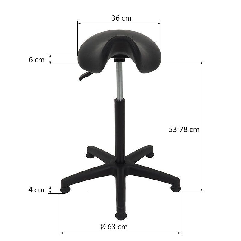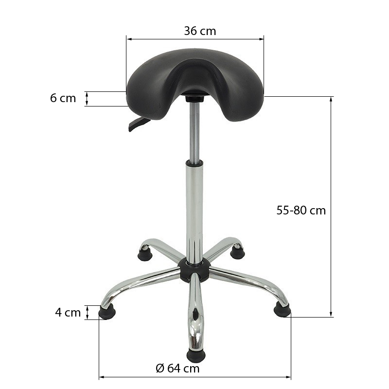 Profilowana konstrukcja siedziska została zaprojektowana tak, by wspierać zdrową postawę ciała i odciążać odcinek lędźwiowy kręgosłupa. Kształt siodła poprawia komfort pracy nawet przy dłuższym użytkowaniu. Dzięki wysokiemu zakresowi regulacji – możliwemu dzięki zastosowaniu wyższego siłownika – z łatwością dopasujesz wysokość siedziska do konkretnego stanowiska lub zabiegu.